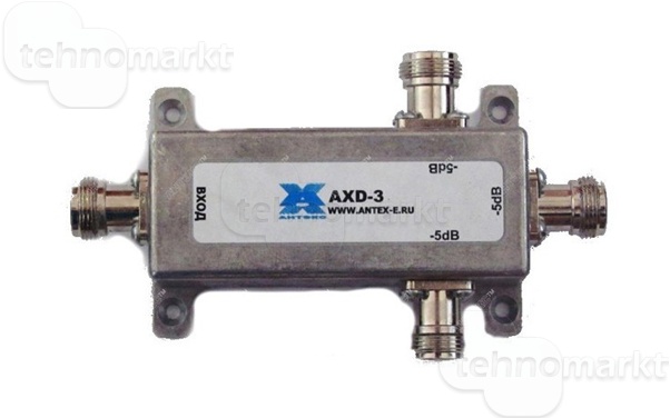 Универсальный делитель мощности АXD-3 предназначены для деления сигналов диапазонов 800-970,1700-2200МГц. АXD-3 обеспечивают равноценное деление мощности входного сигнала между отводами. АXD-3 могут использоваться для работы с репитерами GSM900, GSM1800, 3G а также с двухдиапазонными репитерами типа Picocell 900/1800 SXB и др. для объединения сигналов от внешних антенн или для формирования магистральных соединений между внутренними антеннами. Делители заключены в герметичные алюминиевые корпуса, что позволяет использовать их в уличных условиях.